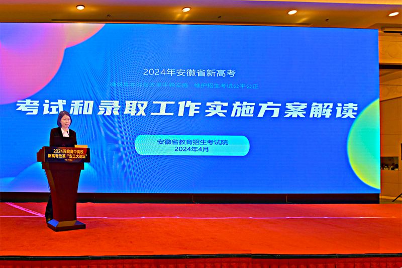 夏静代表安徽省教育招生考试院就2024年安徽新高考考试和录取工作实施方案作了解读。