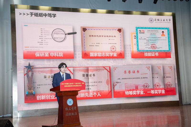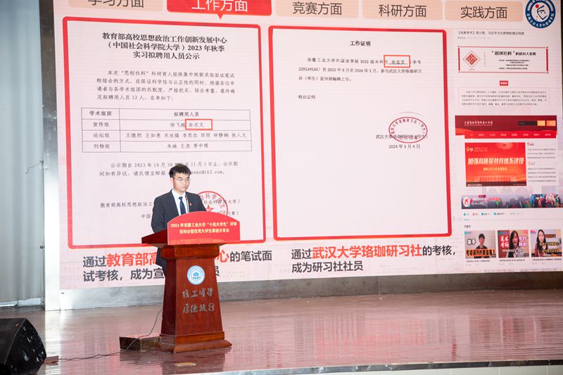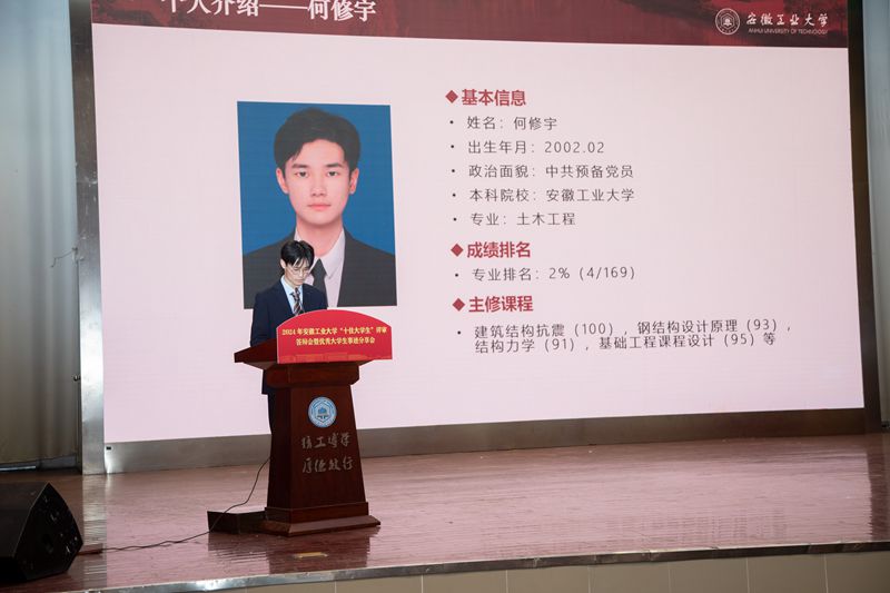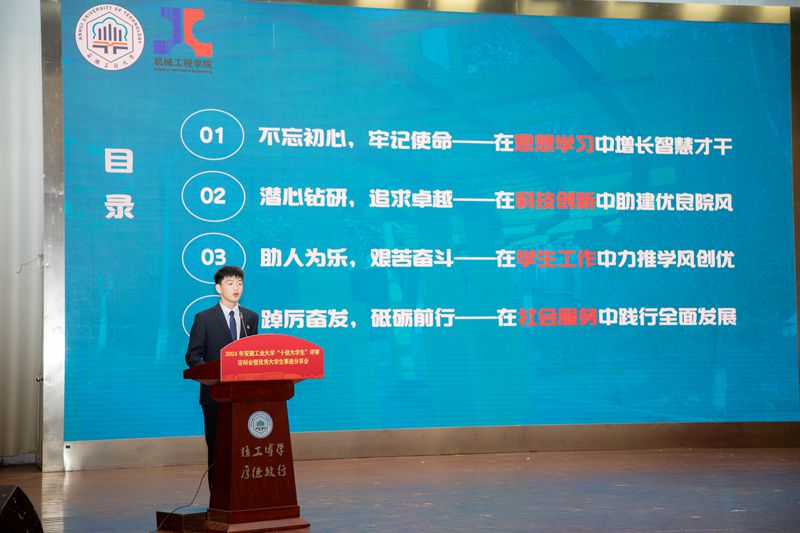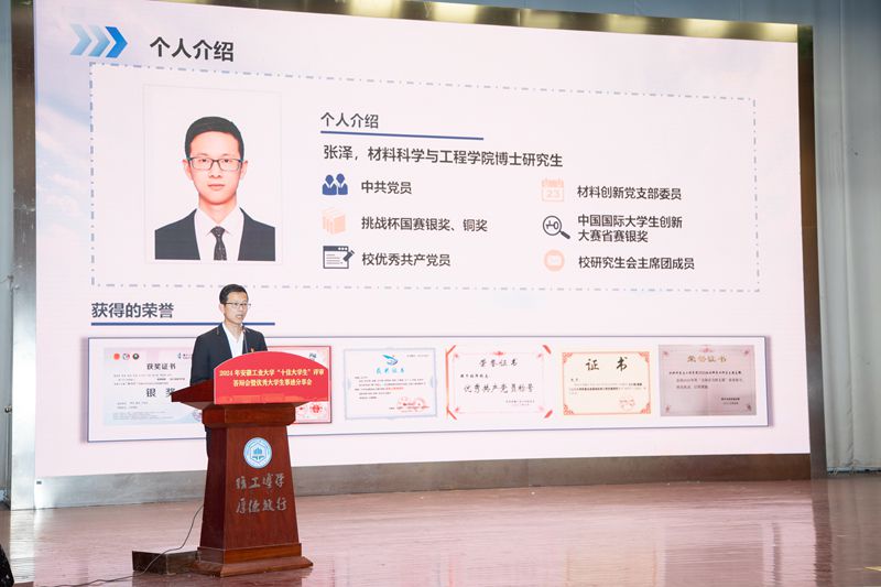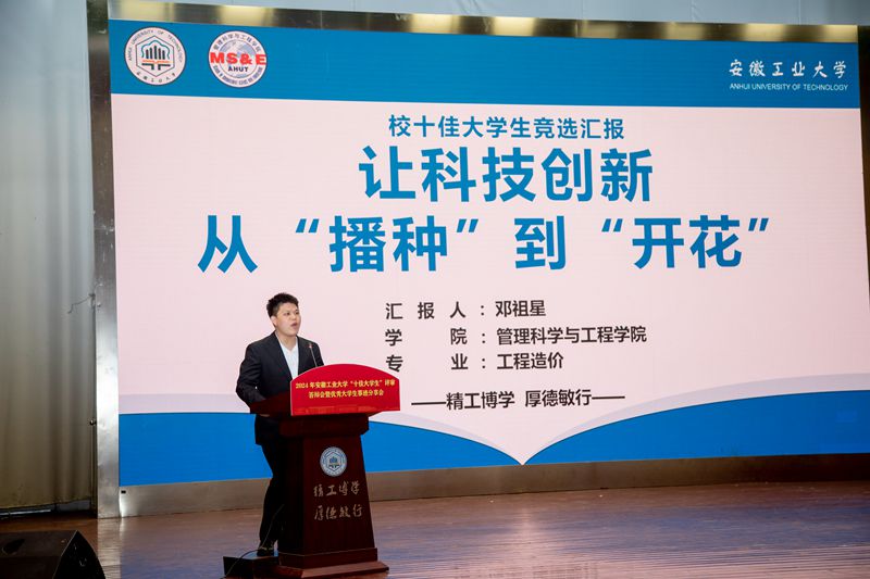 学校精心组织、广泛动员、营造氛围,各学院高度重视、强化宣传、认真选拔,经过个人申请、学院推荐、专家评审,来自14个学院的18名同学进入答辩环节。候选人围绕思想引领、专业学习、创新创业、社会实践、志愿服务、文化活动、就业升学等方面介绍了大学奋斗的故事,从容应对评委老师提问,充分展示了安工大青年开拓进取的精神风貌和矢志奋斗的青春担当。经过激烈的角逐,材料科学与工程学院张泽等10名同学获评ac米兰官方网站2024年“十佳大学生”荣誉称号,化学与化工学院李春普等10名同学获评“优秀大学生”荣誉称号。