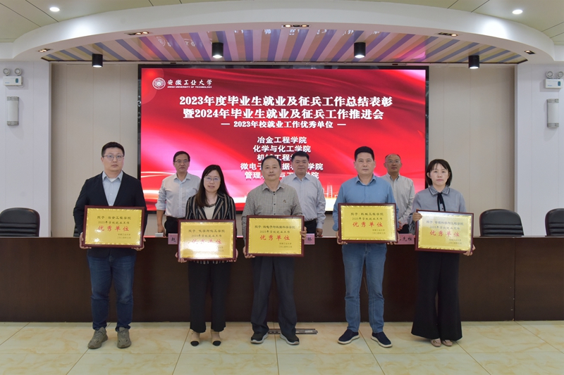 会上,学生工作部(大学生就业创业指导中心)负责人总结了2023年就业及征兵工作情况,汇报了2024年就业及征兵工作进展情况及下一步工作措施。就业工作先进单位冶金工程学院,就业工作先进个人化学与化工学院韩梦成分别作了交流发言。大会还对2023年就业工作优秀学院及征兵工作先进单位、2023年就业工作优秀个人及征兵工作先进个人、第七届就业创业指导课程教学大赛获奖人员进行了表彰。