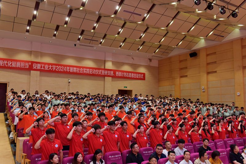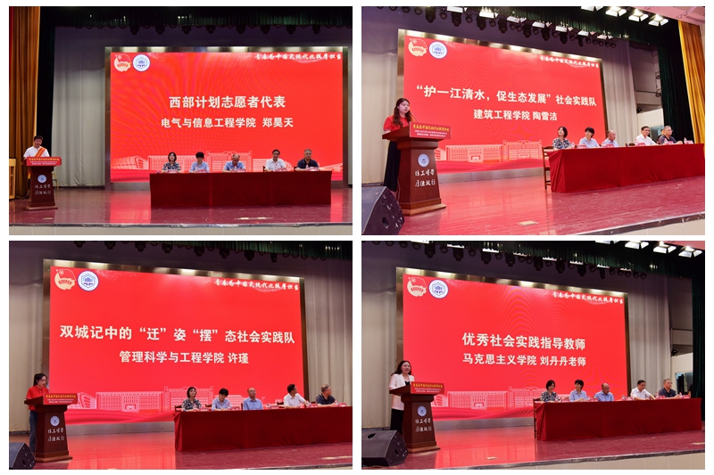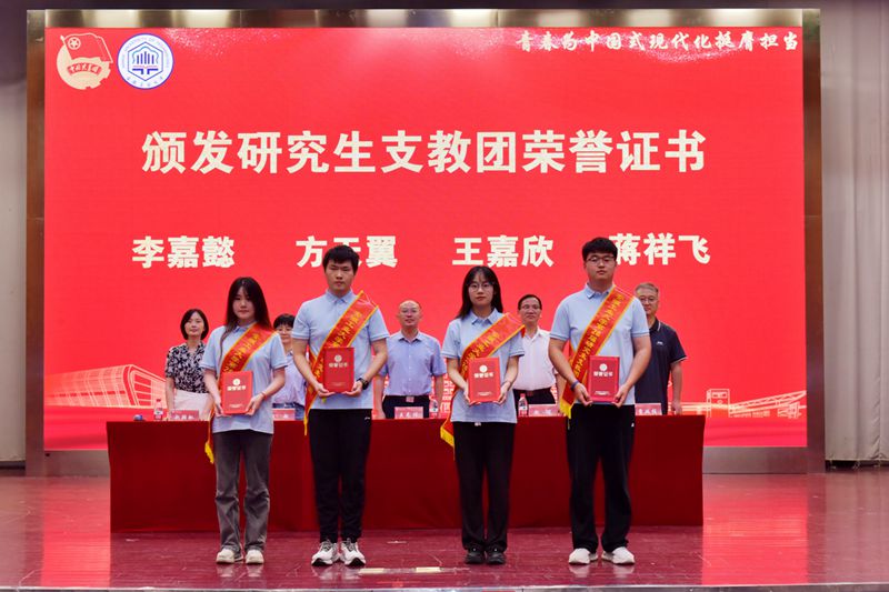 赵颖虹介绍了学校2024年大学生暑期社会实践、研究生支教团和西部计划相关情况。西部计划志愿者代表、电气与信息工程学院郑昊天,社会实践队队员代表、建筑工程学院陶雪洁,管理科学与工程学院许瑾,优秀社会实践指导教师、马克思主义学院刘丹丹先后发言。社会实践队员集体庄严宣誓,承诺将以积极的态度、饱满的热情、崇高的责任,在实践中磨砺青春意志、彰显青春风采。研究生支教团成员和西部计划志愿者受到表彰。