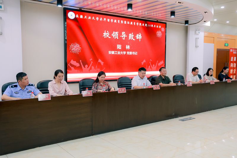 陆林代表校党委行政向参会领导嘉宾、来华留学生校友表示热烈欢迎和衷心感谢,并向长期关心和支持学校来华留学教育及国际教育学院发展的社会各界朋友致以诚挚谢意。陆林指出,十年来,学校坚决贯彻落实习近平总书记关于来华留学工作的重要指示批示精神,学校来华留学教育事业和国际教育学院建设取得了显著成效,招生专业不断优化,生源国别多样化发展,教育对外开放水平和国际影响力加快提升,走出了一条安工大特色的来华留学教育发展之路。
