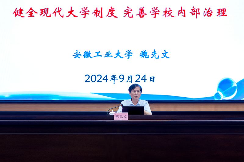 魏先文以《健全现代大学制度 完善学校内部治理》为题作专场报告。报告从高校治理体系与治理能力现代化的涵义、我国高等教育治理历程、中国特色现代大学制度、高校治理体系与治理能力现代化是时代命题、健全现代大学制度完善学校内部治理等5个方面,详细阐述了健全现代大学制度、完善学校内部治理的主要内容和丰富内涵,以及ac米兰的探索实践。