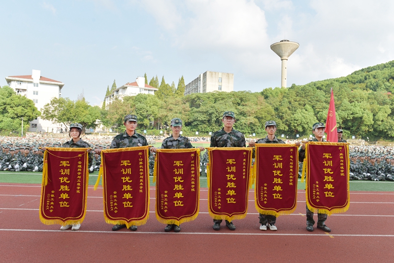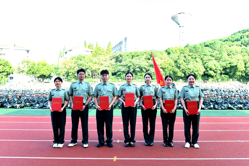 校党委常委、副校长曾杰宣读《ac米兰官方网站关于表彰2024级学生军训先进集体和先进个人的决定》。与会领导嘉宾为获奖单位和个人颁发了优胜锦旗和荣誉证书。