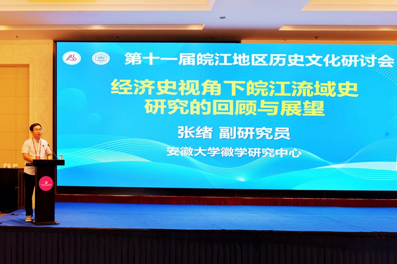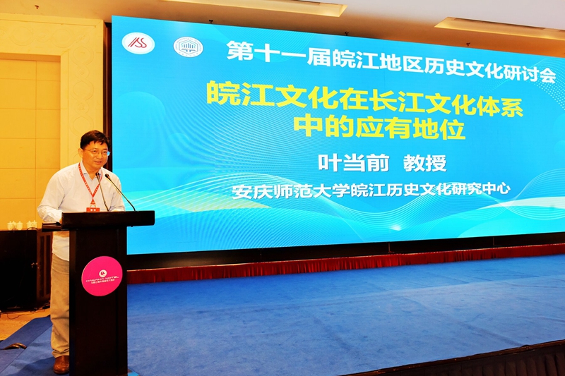 在大会报告环节,安徽省领军人才项目特聘教授、安庆师范大学皖江历史文化研究中心主任叶当前教授,以“皖江文化在长江文化体系中的应有地位”为题,指出皖江史前文明是长江考古地理学上重要一环,皖江市县地方志参照长江获得地理定位,皖江文化在长江文化史上有举足轻重的地位,皖江文化与中华长江文化共性和个性并存。安徽省历史学学会副秘书长、安徽大学徽学研究中心副研究员张绪,以“经济史视角下皖江流域史研究的回顾与展望”为题,从经济、思想、文化、人物等方面系统分析了皖江流域史研究进展,从经济史视角阐释了皖江流域史研究主题,展望了该领域未来研究思路和方向。