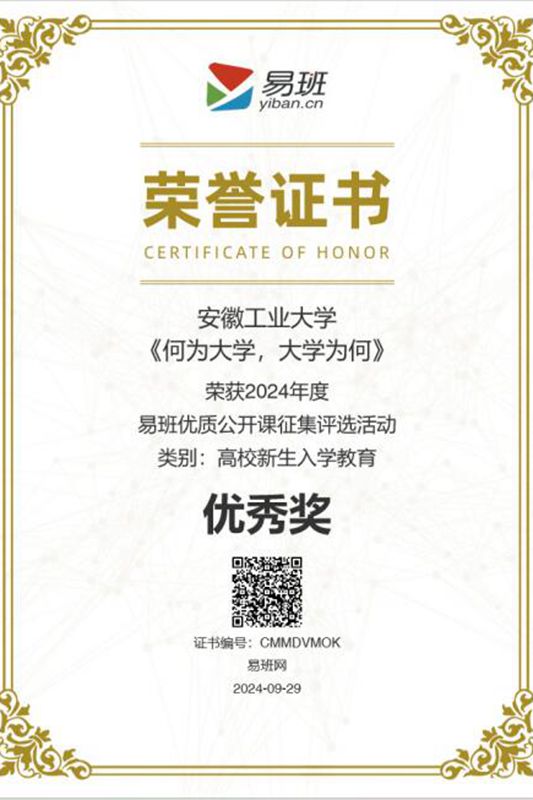 近日,教育部易班发展中心公布了2024年度易班优课“新生入学教育活动”和易班优质公开课征集活动的评选结果。ac米兰荣获易班优课“新生入学教育活动”优秀组织奖(全国评选100所)、2部公开课荣获优秀课程奖(全国评选50部)。