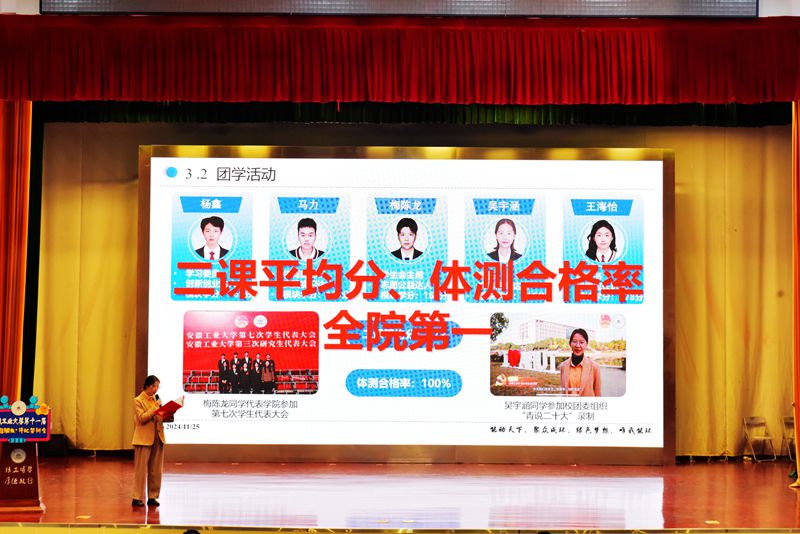 综合班级创建展示评分和现场答辩得分,管理科学与工程学院流Z221班、冶金工程学院冶215班、计算机科学与技术学院计211班、能源与环境学院能214班、材料科学与工程学院金Z211班、化学与化工学院应213班、电气与信息工程学院气213班、微电子与数据科学学院光212班、商学院会213班、商学院济221班获评第十一届“十佳班级”。