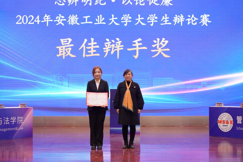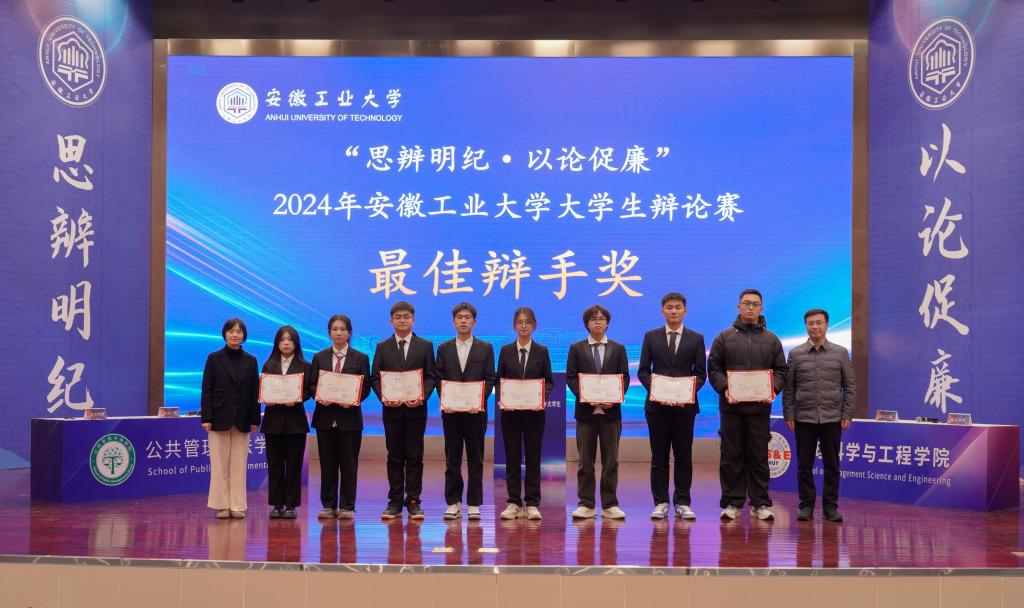 本次大赛对优秀组织奖、冠亚季军代表队和全部赛程中涌现出的最佳辩手进行了颁奖。公共管理与法学院获冠军,管理科学与工程学院获亚军,电气与信息工程学院、能源与环境学院代表队获季军。公共管理与法学院、管理科学与工程学院、电气与信息工程学院、能源与环境学院学院、外国语学院、马克思主义学院、机械工程学院获“优秀组织奖”。电气与信息工程学院郝钰涵等12名同学获“最佳辩手奖”。