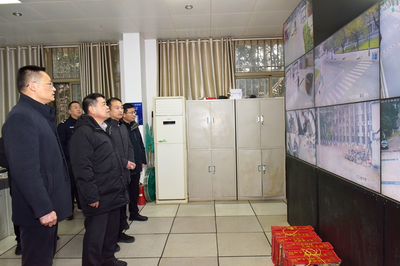 在佳山校区校园110服务中心,陆林一行查看了校园不同点位的实时图像,向坚守一线的安保人员表示敬意,感谢大家一直以来为保障校园安全稳定作出的积极贡献。希望大家在新的一年里以“时时放心不下”的责任感和“事事落实到位”的执行力,高标准、严要求推进平安校园建设,为学校内涵式高质量发展提供坚实保障。