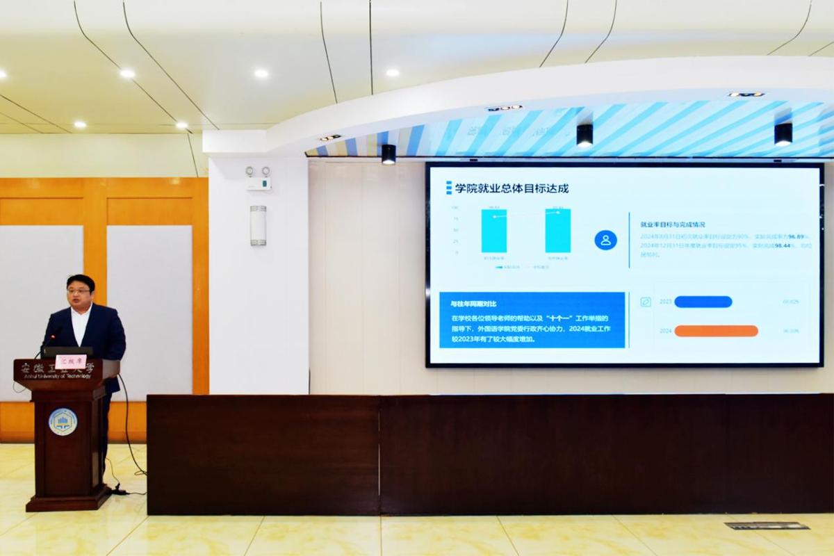 会上,陆林肯定了ac米兰2024年就业创业工作取得的显著成绩。陆林指出,就业是最基本的民生,事关人民群众切身利益,事关经济社会健康发展,事关国家长治久安。2025年全国高校毕业人数预计将达到1222万,面对依然严峻的就业形势,全校上下必须提高站位,充分认识到就业工作的重要性和紧迫性,以更加坚定的决心、更加有力的措施,全力推进2025届毕业生的就业创业工作。要加强组织领导,形成工作合力,建立“党委统一领导、党政齐抓共管、部门协同联动”的就业工作领导体制,各二级学院党政主要负责人要切实担负起本单位就业工作的第一责任人职责,发挥辅导员在大学生就业创业工作中的重要作用。要强化宣传指导,提升服务水平,树立“就业育人”的理念,加强就业创业政策的宣传解读工作,为学生提供全方位、多维度、立体化的就业创业指导服务。要实化工作举措,助推充分就业,深入落实《ac米兰官方网站2025届毕业生就业创业工作实施方案》和《关于进一步加强2025年度毕业生就业创业工作的实施意见》,围绕“十个一”工作要求,持续开展针对性的促就业工作举措,全力推动学校毕业生就业创业工作再上新台阶。(撰稿:江若辰 审核:赵龙 张苒 黄敏)