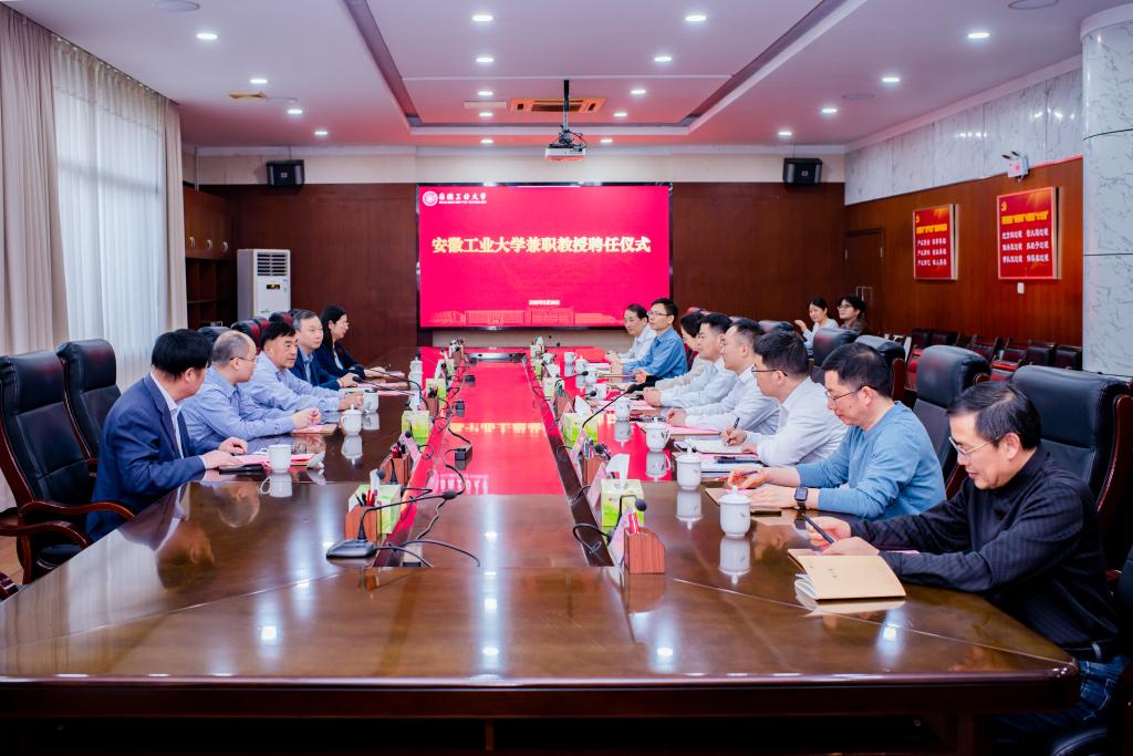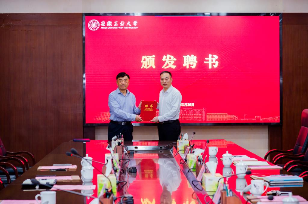 3月26日下午,学校在佳山校区会议中心举行兼职教授聘任仪式,正式聘任第十四届全国人大代表、马钢(集团)控股有限公司原党委书记、董事长丁毅校友为学校兼职教授。校党委书记陆林,校党委副书记、校长曾杰出席,党委宣传部、教师工作部、科研处、校友工作处、冶金工程学院、资产经营公司、工程研究院等相关单位负责人以及公司代表参加。