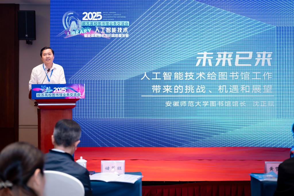 郑啸代表学校党委、行政对各位专家的到来表示欢迎,并介绍了学校发展历程和办学成就,从发展历程、创新特色、技术赋能等方面介绍了ac米兰图书馆的基本情况。郑啸指出,人工智能与图书馆的深度融合不仅是技术革命,更是文明跃升,我们要以本次研讨会为起点,携手构建开放共享的智慧生态,培育有温度的人机协同,打造有灵魂的知识殿堂。期待在长三角智慧图书馆联盟框架下,苏皖高校图书馆深化“数字丝绸之路”合作,共同谱写长三角知识共同体建设新篇章。