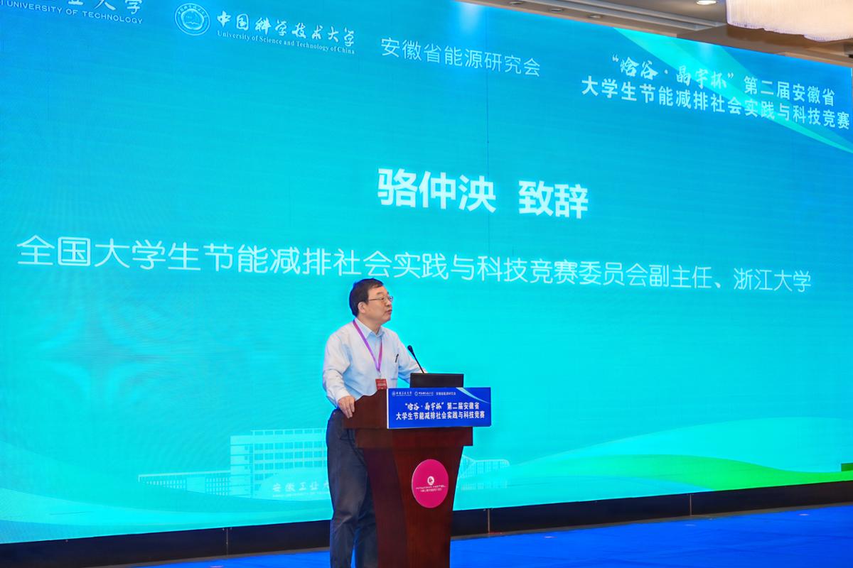舒歌群代表安徽省能源研究会致辞,对莅临现场的各位专家学者表示感谢,对全省33所高校的178支参赛团队表示欢迎。他指出,实现碳达峰碳中和是以习近平同志为核心的党中央统筹国内国际两个大局作出的重大战略决策,现在正是当代青年大展身手的黄金时期,希望各位选手像皖南青弋江般奔涌向前——既有劈开群山的勇毅,又有润泽万物的胸怀,更有“九曲回环终向东”的科创定力。