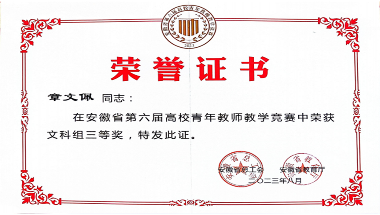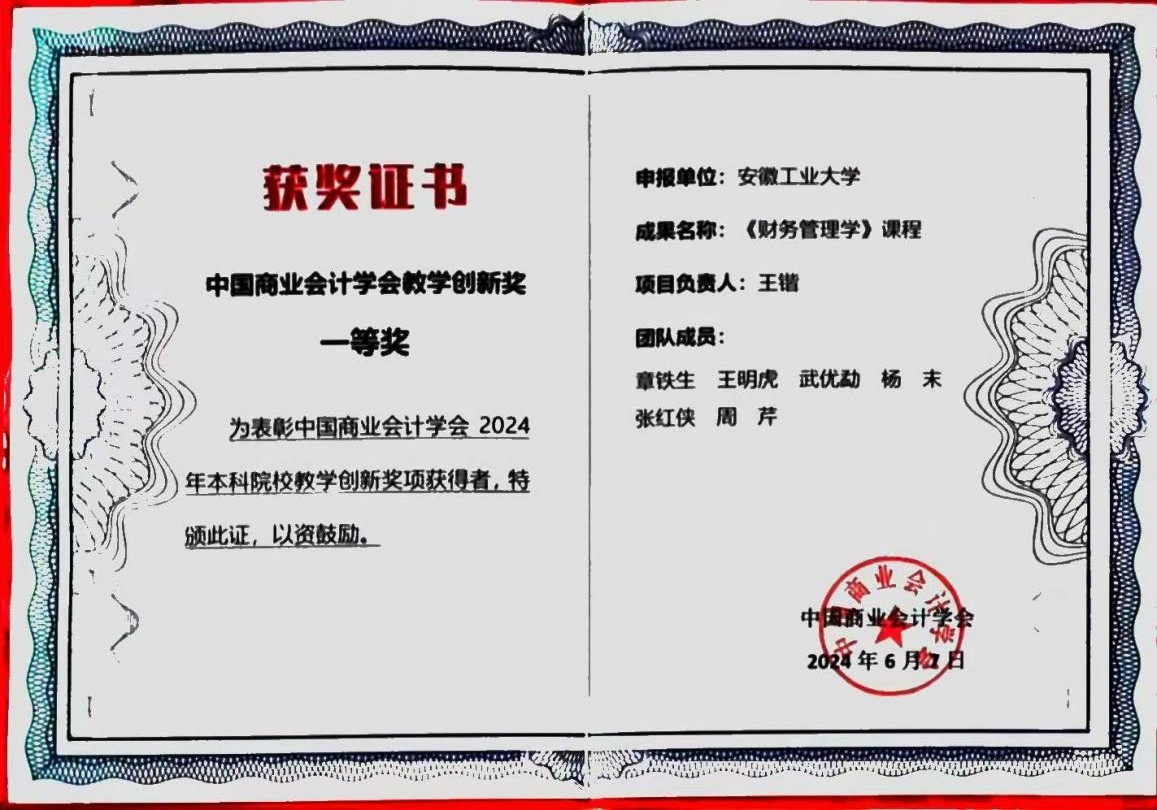 教师典范持续涌现。洪功翔教授荣获全国模范教师称号,王先柱教授为中组部首批青年拔尖人才,章铁生教授为全国会计领军人才,王锴教授荣获“安徽省最美教师”称号,洪功翔、章铁生、刘家树、周世军等4位教授荣获省级教学名师,李丽、吴金南和刘艳华等3位教授为省教坛新秀。此外,学院还涌现出优秀党务工作者、十佳班主任、青年五四奖章获得者等一批先进个人。