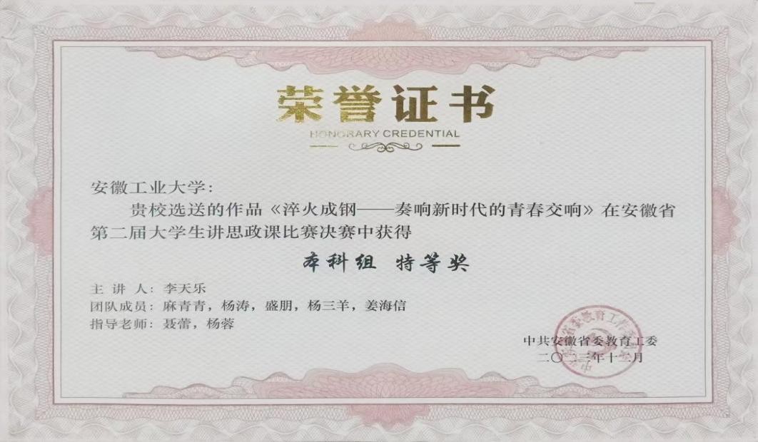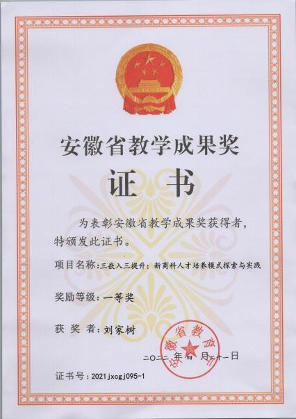 创新创业教育成绩斐然。2010年以来,平均每年获省级以上各类奖项 50 余项;学院荣获第十三届“挑战杯”课外学术科技作品竞赛全国特等奖,这也是省属高校获得的第一个全国特等奖;学院在第十五届“挑战杯”大赛中获全国一等奖、二等奖各 1 项,学子在大学生讲思政课比赛中连续两年获得安徽省特等奖。