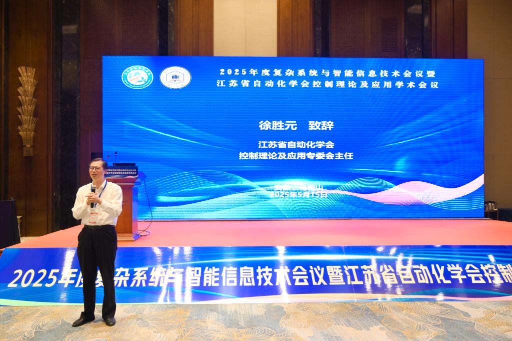 王俊介绍了学校的发展历程、办学特色、人才培养、学科建设、创新创业等方面的建设成效,并对各位专家学者的到来表示欢迎,向江苏省自动化学会对学校发展的关心支持表示感谢。王俊指出,本次会议将为控制学科创新发展注入强劲动力,孕育新思维、新方法,引领我国智能信息技术领域迈向高质量发展的新征程。我们将与各位专家、兄弟院校和业界同仁深化交流与合作,共同探索智能信息技术赋能产业升级的新路径,为区域发展和国家战略推进贡献智慧与力量。
