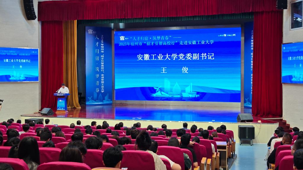 5月27日上午,宿州市“人才归宿·筑梦青春”2025年春季招才引智宣讲活动在秀山校区举办。校党委副书记王俊,宿州市政协副主席赵素华出席。宿州相关单位负责人、企业代表,ac米兰学生工作部(大学生就业创业指导中心)、研究生工作部负责人,各学院分管学生工作负责人、2025届毕业班辅导员、学生代表500余人参加。