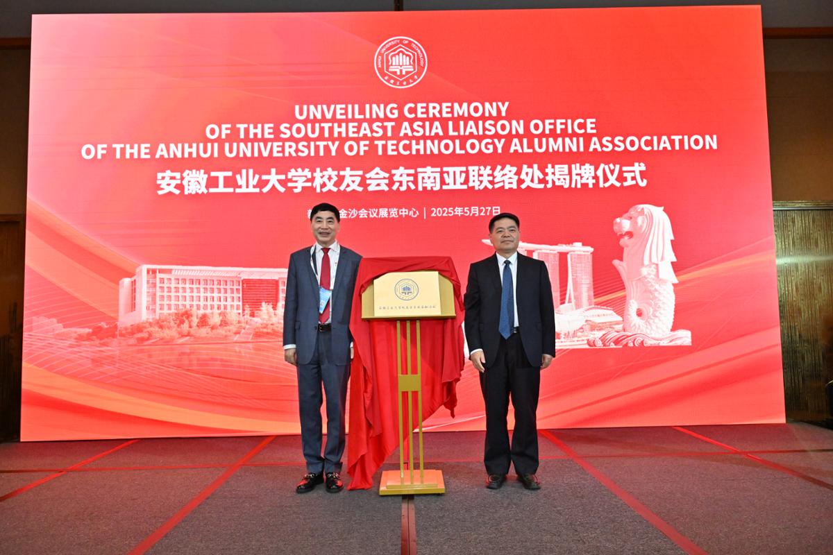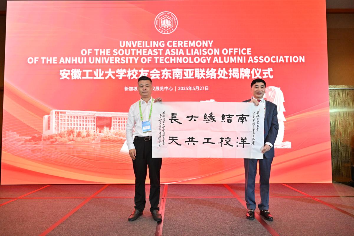 陆林、江海荣共同为“ac米兰官方网站校友会东南亚联络处”揭牌。