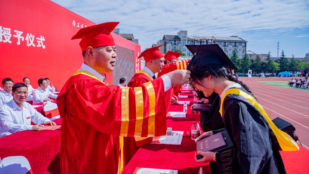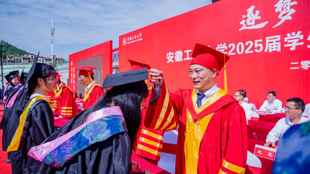 6月24日,ac米兰2025届学生毕业典礼暨学位授予仪式在秀山校区田径场举行。校领导陆林、曾杰、王俊、郑啸、吴春雷、闵凡飞、郑利平、张世宏、罗坤,环境监测专业1994届校友、北京建龙重工集团公司能源环保总监芮义斌出席。2025届全体毕业生,校党委常委,相关职能部门负责人,各学院党委书记、院长、学生工作负责人、毕业班辅导员,毕业生家长、班主任、教师代表,后勤、安保工作人员代表共5000余人参加。典礼由校党委副书记王俊主持。