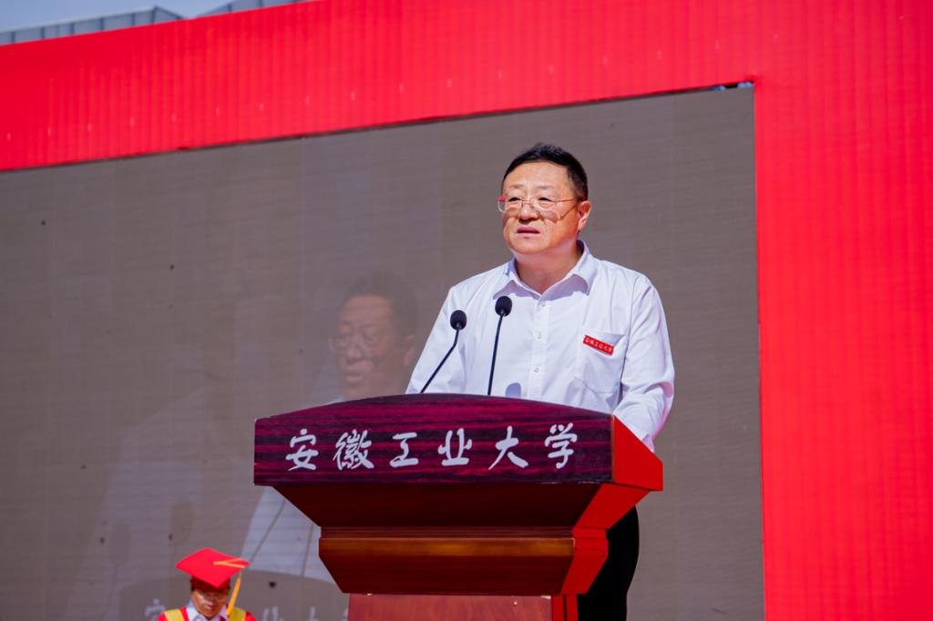 校党委副书记、校长曾杰代表学校向圆满完成学业、即将奔赴辽阔山海的毕业生表示祝贺,向辛勤培育、悉心指导、热情帮助、全力支持毕业生的师长亲友们致敬。曾杰结合自身奋斗经历,为同学们生动诠释了“人生的剧本永远充满可能”的真谛,并以“山再高,往上攀,总能达峰;路再长,走下去,定能到达”的铿锵寄语,为全体毕业生上了难忘的“最后一课”。他深情寄语全体毕业生要始终心怀祖国,把爱国当作信仰,把敬业当作准则,将奉献融入日常,奋力书写为中国式现代化挺膺担当的青春篇章;要将毕业证当作终身学习的通行证,让学习像呼吸一样自然,让奋斗变成刻进骨子里的坚持;要坚持在守正中创新,以敢为人先的魄力突破常规,让每一次尝试成为推动时代进步的星火。
