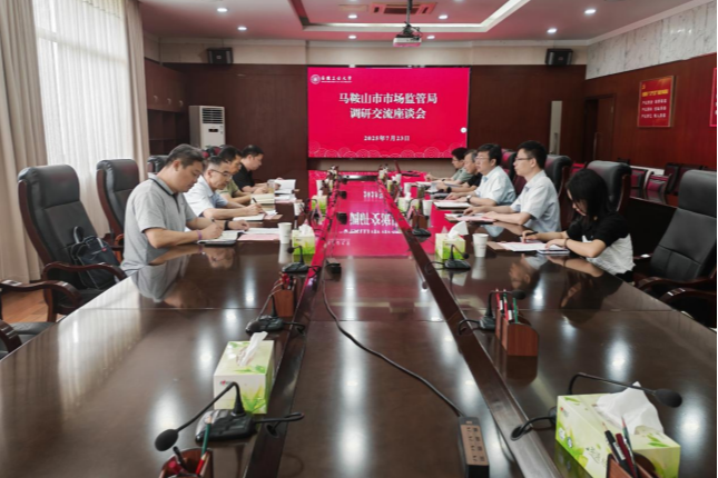 7月23日,马鞍山市市场监督管理局局长陈国双、副局长秦玉保一行来校,围绕知识产权工作开展专题调研。校党委常委、副校长张世宏出席,科研处、工程研究院、图书馆等单位负责人参加。