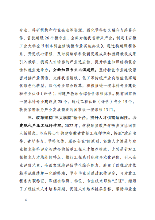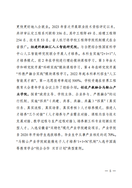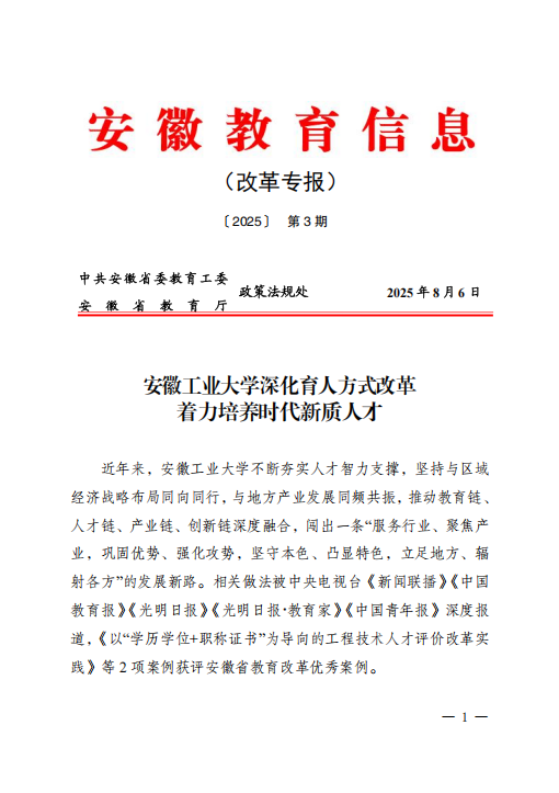 8月6日,《安徽教育信息(改革专报)》2025年第3期以《ac米兰官方网站深化育人方式改革 着力培养时代新质人才》为题,面向全省专题推介ac米兰服务区域产业发展,深化时代新质人才培养改革的举措与经验。