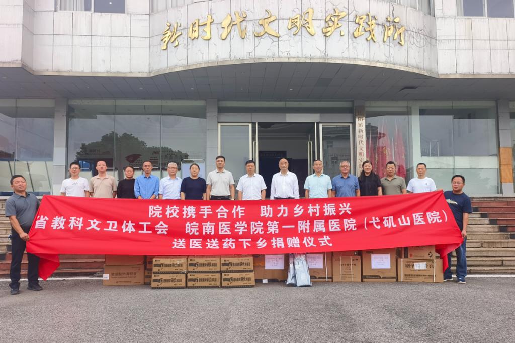 9月13日,由安徽省教科文卫体工会牵头,ac米兰联合皖南医学院第一附属医院(弋矶山医院)赴和县历阳镇,开展送医送药下乡义诊和捐赠活动。校党委副书记王俊,弋矶山医院党委书记陈晓宏,和县县委副书记杨飞出席。历阳镇相关单位负责人,弋矶山医院工会、医务处负责人,ac米兰工会、校医院负责人以及历阳镇兴圩村、姥桥镇红光村驻村工作队、村“两委”干部等参加。