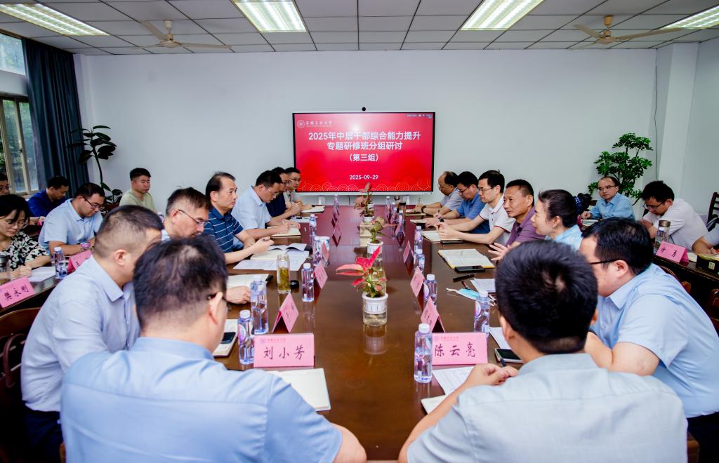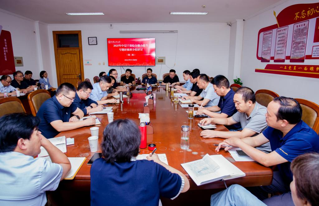 全体中层干部结合培训内容及校第五次党代会、高质量发展暑期研讨会精神,分五组进行了交流研讨。结业式上,人力资源处、发展规划处、学科建设处、教务处、科研处从学科建设、人才师资培养、教学科研水平质量提升、“十五五”规划等方面进行了交流分享。