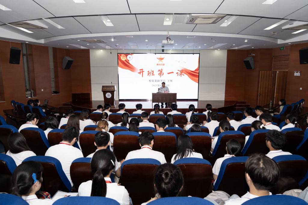9月29日下午,校党委副书记王俊为2025级校“青马工程”全体学员讲授开班第一课。校团委负责人、“青马工程”班主任以及2025级“青马工程”全体学员现场聆听。