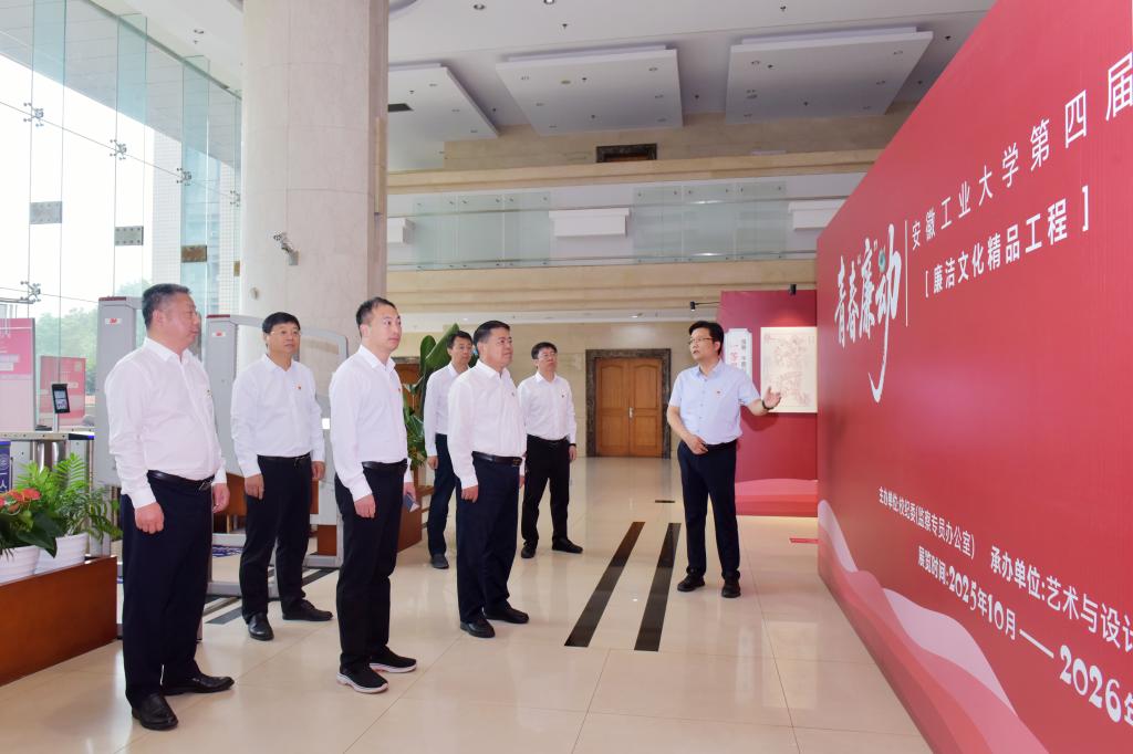 10月11日上午,校第四届“廉洁文化精品工程”优秀作品展在佳山校区图书馆二楼大厅开展。校领导陆林、曾杰、王俊、吴春雷、郑利平、张世宏,党办校办、纪委办、组织部、宣传部、巡察办、学生工作部、研究生工作部、教师工作部、艺术与设计学院等单位负责人现场观展。
