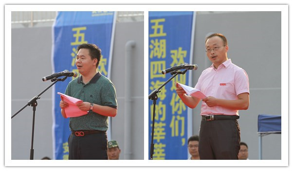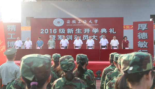 校友代表、安徽浩翔农牧集团公司董事长高亚飞在发言中发出“放飞梦想,向着成功的安工大人目标前行”的倡议。化学与化工学院教授张王兵作为教师代表发言。材料科学与工程学院董秋君和公共管理与法学院王旭分别代表在校生、新生发言。校学生会主席程路伟带领全体新生宣读入学誓词。军训教官代表陈时雨作表态性发言。