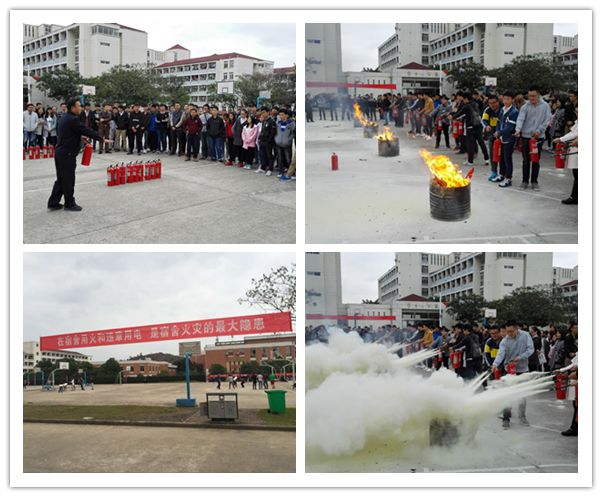 11月9日是我国的消防安全日。为进一步增强广大师生的消防安全意识,使大家熟练掌握消防灭火器材的使用技能, 11月9日下午,保卫处、学工部、后勤处联合各学院,组织部分教师、学生代表和楼宇管理人员在秀山校区AB栋宿舍篮球场开展消防灭火演练。