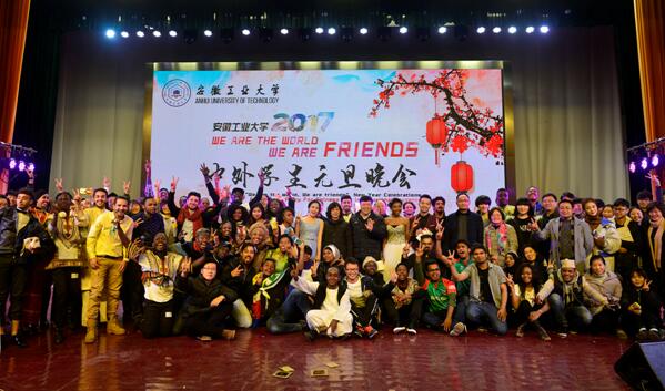 12月27日晚,ac米兰在秀山校区新大学生活动中心举办2017年“We are the world; we are friends”中外学生元旦联欢晚会。晚会由国际教育学院和校团委联合举办,校长李家新、副校长顾明言到晚会现场与各相关部门、学院领导,国际学生授课教师,全体国际学生,部分中国学生600多人欢聚一堂,共庆2017年元旦的到来。