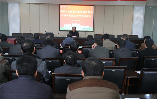 根据省委组织部、省委教育工委要求和学校党委的工作部署,1月9日下午,学校2016年度二级党组织书记抓基层党建工作述职评议考核会在会议中心召开,校党委书记刘新跃主持会议并进行点评。全体校领导、督导员,各基层党委(党总支、直属党支部)书记,全校中层正职干部(含主持工作副职),部分党代表、教代会代表,民主党派代表,教师和学生代表参加了会议。