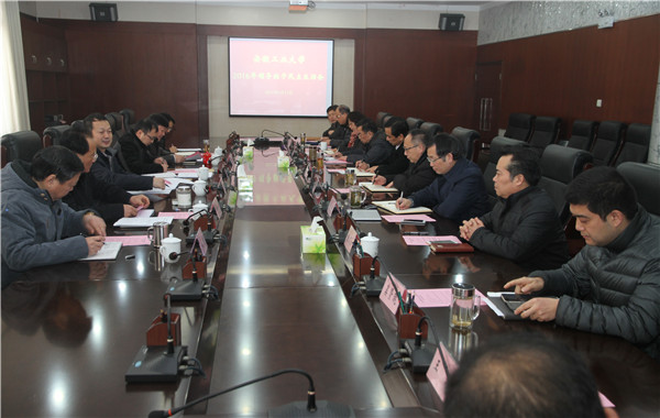 会议对2015年度校党委领导班子民主生活会整改落实情况进行了书面通报,党委书记刘新跃代表领导班子进行了对照检查,从理想信念、政治纪律和政治规矩、作风、担当作为、组织生活和落实全面从严治党责任等6个方面进行了深入查摆,剖析了问题产生的根源,并从强化理论武装、凝聚改革发展合力,强化责任担当、全面落实“两个责任”,完善长效机制、确保问题整改到位三个方面明确了整改方向。