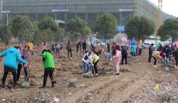 3月16日下午,秀山校区研究生公寓西面空地旌旗招展,人头攒动。在校党政领导刘新跃、陈润、祖明、林钟高、张国宝、魏先文和机关各部门、直属单位干部职工一起参加义务植树活动。学生志愿者也自发参与此次植树活动中。