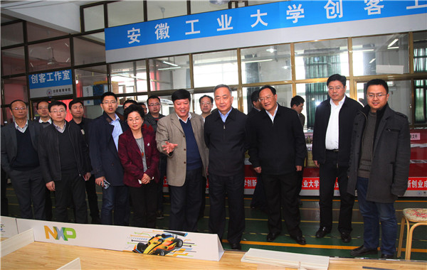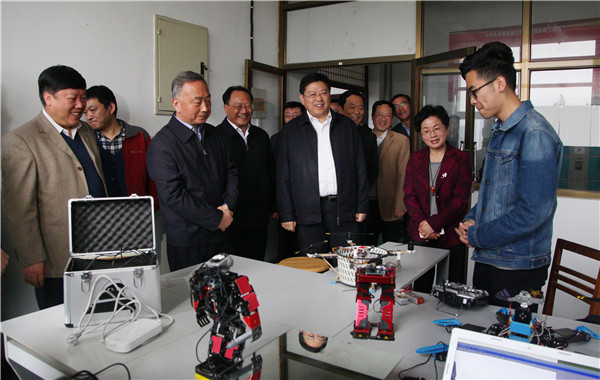 在创新教育学院,徐立全与正在进行创新训练的师生亲切交谈,兴致勃勃地观看了无碳小车依靠动能与势能相互转化而行进的模拟训练,以及电控小型智能机器人翻转与行走的实训。随后,他走进无人机与机器人联合模拟实验室,详细了解了机器人模型的制作过程和工作原理,并鼓励同学们继续努力,在创新创业创造上多下功夫,争取取得更大的成功。徐立全一行还参观了工程文化墙和学子创新荣誉墙,当得知学校在国际、国家级和省级创新创业比赛中获得了很多荣誉时,他非常高兴,对ac米兰创新创业教育给予了高度评价。