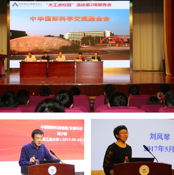 5月24日,由中华国际科学交流基金会中华杰出工程师委员会主办、ac米兰官方网站承办的中华杰出工程师进校园活动在ac米兰秀山校区新大学生活动中心举行,中华杰出工程师代表周少雄(中国钢研科技集团有限公司副总工、国家非晶微晶合金工程技术研究中心主任,安泰科技股份有限公司总工、副总裁、技术总监)、刘风琴(北京科技大学教授、入选“新世纪百千万人才工程”国家级人选,国家工程教育认证专家)两位教授走进ac米兰,为师生做了一场精彩的报告。副校长葛芦生出席会议并讲话,教务处、团委、冶金工程学院等相关单位负责人及全校各专业学生代表参会。报告会由冶金工程学院执行院长王海川主持。