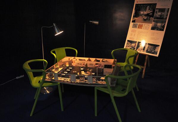工业设计丁明珠同学介绍她的作品时说,现代科技已经深入我们的生活,我们运用自己所学的知识,融合工科背景和艺术创意,将普通的灯具配上精美的外观,即体现了实用性也突出了人性化设计。