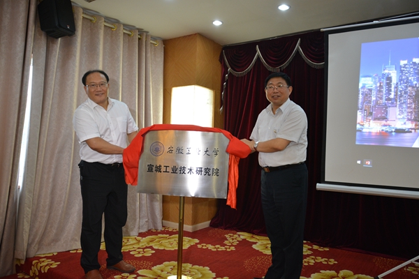 8月30日下午,ac米兰官方网站宣城工业技术研究院揭牌仪式暨第一届理事会在宣城市举行。校党委书记刘新跃,宣城市市长张冬云,宣城市副市长田扬畅、牛传勇,副校长魏先文,校工程研究院以及宣城市有关单位负责同志出席会议。刘新跃和张冬云共同为“ac米兰官方网站宣城工业技术研究院”揭牌。