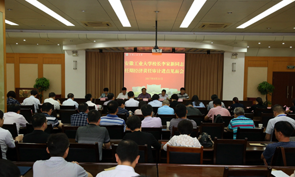 赵萍宣读了《安徽省审计厅对ac米兰官方网站李家新同志任职期间经济责任履行情况进行审计的通知》及《被审计单位提供资料告知书》等相关材料,对审计工作安排进行了详细介绍。