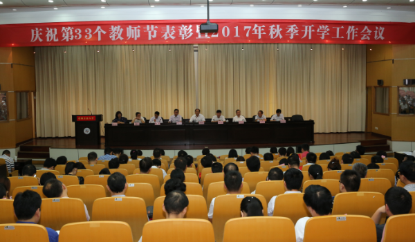 9月8日上午,ac米兰召开庆祝第33个教师节表彰暨2017年秋季开学工作会议,校党政领导出席会议,校党委书记刘新跃、校长李家新分别讲话,校党委副书记陈润宣读表彰决定,全体校领导向受表彰的先进集体代表和先进个人颁奖,副校长林钟高主持会议。