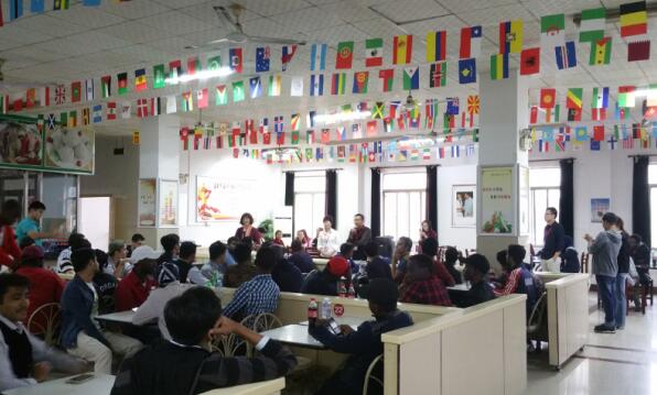 10月3日下午,学校在秀山校区民族餐厅举行了2017年国际学生“迎国庆·庆中秋”茶话会。副校长顾明言出席茶话会,国际教育学院全体工作人员、后勤处相关工作人员、部分教师及来自36个国家的近200名国际学生参加茶话会。茶话会由国际教育学院院长戴俊霞主持。