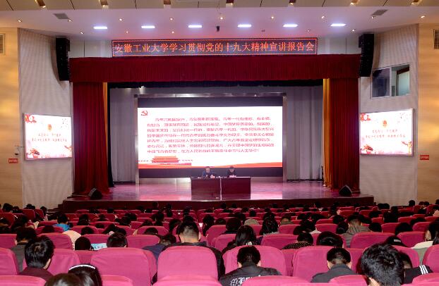 12月1日下午,党的十九大代表、马鞍山市郑蒲港新区姥桥镇党委书记郑李龙受邀走进ac米兰,在秀山校区大学生活动中心报告厅举行“不忘初心,牢记使命,深入学习贯彻党的十九大精神”的宣讲报告会,与青年学生畅谈十九大。校团委负责人、各学院分团委负责人、ac米兰习近平新时代中国特色社会主义思想青年研究会成员、校院学生骨干代表500余人参加了报告会。