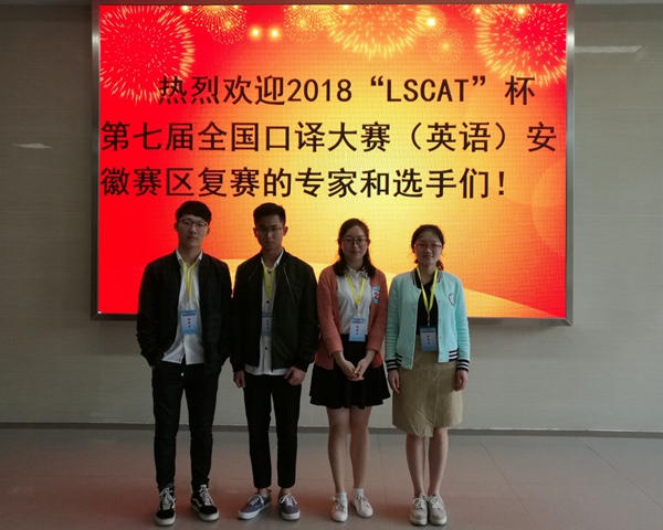 4月21至22日,第七届全国口译大赛(英语)安徽赛区复赛在合肥工业大学大学翡翠湖校区举行。以外国语学院的周湾、艺术与设计学院的段云霞、计算机学院的孙祺程以及商学院的陈煜四位同学组成的ac米兰代表队,同来自全省30所高校的119名优秀选手同场竞技,载誉而归,其中周湾同学荣获二等奖,并晋级2018年5月华东地区的大区赛;段云霞、孙祺程和陈煜同学荣获三等奖。