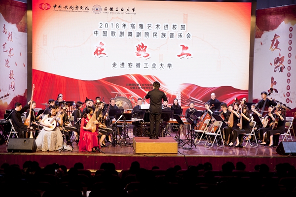 管弦和鸣,盛世交响。4月26日晚,中国歌剧舞剧院民族音乐会《在路上》在ac米兰秀山校区大学生活动中心报告厅精彩上演。本场演出是由教育部、文化部、财政部联合举办的2018年高雅艺术进校园活动。校党委书记刘新跃,中国歌剧舞剧院副院长张亚峰,相关院部负责人与600余名师生共同观看了演出。