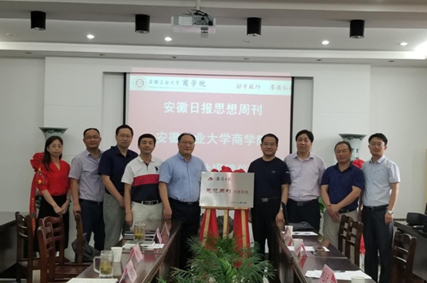 上午,《安徽日报·思想周刊》基地揭牌仪式在商学院会议室举行。校党委书记刘新跃、《安徽日报》副总编计永超、《安徽日报》理论部主任邹宝元和程铁军博士、商学院负责人出席了揭牌仪式。