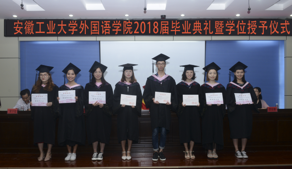 典礼上,院党委书记胡卫东宣读了学院2018年“安徽省品学兼优毕业生”和“校优秀毕业生”名单。院长洪流宣读了《关于准予ac米兰官方网站外国语学院陈诗颖等90名同学毕业的决定》。院党委副书记、副院长黄宇弦主持了典礼。参加典礼的各位领导为获得荣誉称号的优秀毕业生颁奖。
