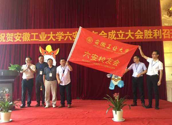 刘新跃向六安校友会授会旗。新当选会长、1994级财务专业校友蔡英宏在发言中对母校的培养和关心表示感谢。校友工作处处长单桂锋宣读了学校关于同意成立六安校友会组织机构的批复。(撰稿:宁永球 审核:单桂锋 凤杰 黄勇)