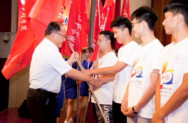 会上,校团委负责人介绍了ac米兰2018年大学生暑期社会实践、西部计划和研究生支教团以及“第二课堂成绩单”制度工作有关情况。研究生支教团代表、公法学院王路红同学,社会实践团队队员代表、化工学院董跃耀同学,社会实践团队指导教师代表、艺设学院李林森老师先后在仪式上发言。社会实践队队员们集体庄严宣誓,表达了青年学子投身实践这个“大课堂”的决心。与会领导为第二课堂活跃度先进班级颁奖,并为西部计划志愿者和研究生支教团成员佩戴红花,颁发荣誉证书。校党委书记刘新跃为社会实践重点团队授旗。