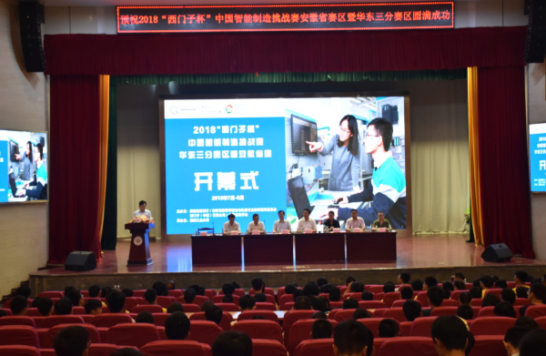 由安徽省教育厅、教育部高等学校自动化类专业教学指导委员会、中国系统仿真学会和西门子(中国)有限公司主办,ac米兰承办的2018年中国智能制造挑战赛(安徽赛区、华东三分赛)近日在ac米兰秀山校区举行。校长魏先文出席开幕式。教务处、学工处、创新学院和电气学院等有关部门负责人及参赛选手、领队老师和工作人员500余人参加开幕式。